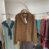新品 チェック柄ダブルブレストジャケット 大人女子☆ ロング ⦿韓国 オルチャン K-pop アイドル ジャケット スーツ ワンピース カーディガン ニット フーディー トレーナー キャミソール スカート シャツ ブラウス 5B6169882