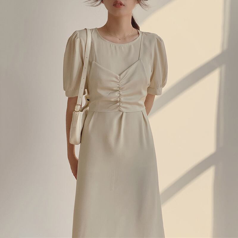 新品ラウンドネックベルトワンピースドレスOP★スリーブ スウィート ハーネス ステッチ ⦿韓国 オルチャン K-pop アイドル ジャケット スーツ ワンピース カーディガン ニット フーディー トレーナー キャミソール スカート シャツ ブラウス 5A6783050