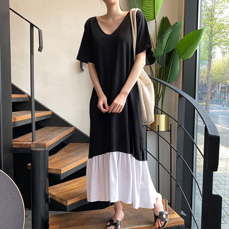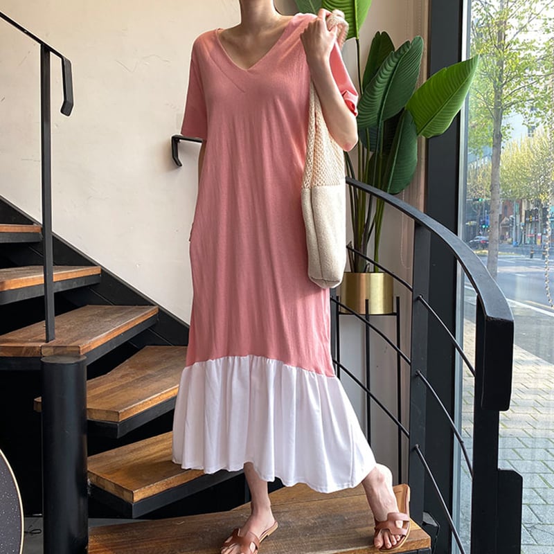 新品 ♡♥カワイイ♥Vネックカラーロングカジュアル大人女子☆ エレガント ステッチ ⦿韓国 オルチャン K-pop アイドル ジャケット スーツ ワンピース カーディガン ニット フーディー トレーナー キャミソール スカート シャツ ブラウス 5A4213078