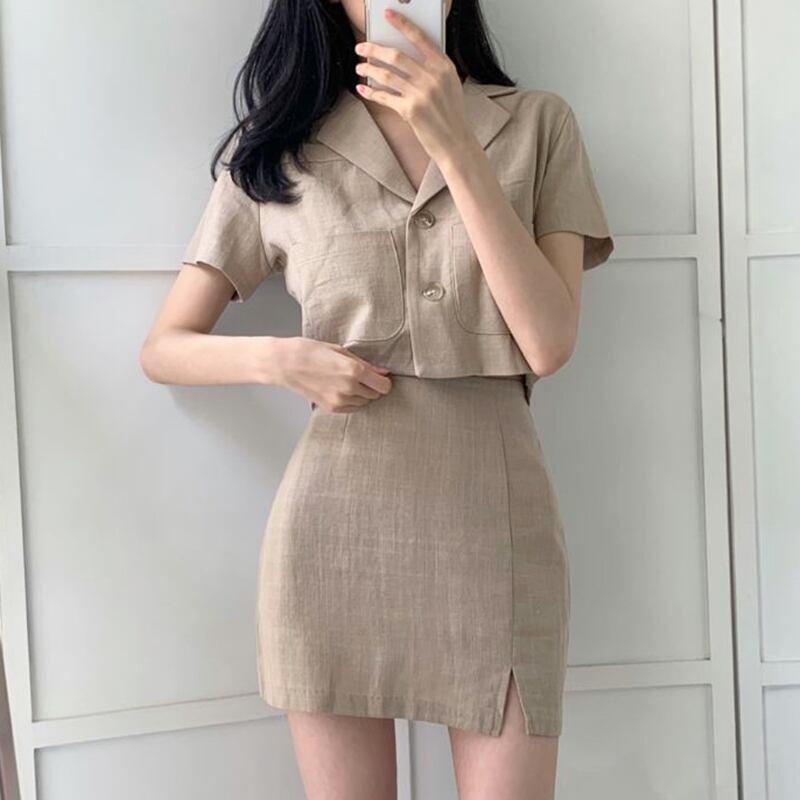 新品 ショートシャツブラウス スリットスカート トップス or ボトムス レトロ ⦿韓国 オルチャン K-pop アイドル ジャケット スーツ ワンピース カーディガン ニット フーディー トレーナー キャミソール スカート シャツ ブラウス 5A3824433