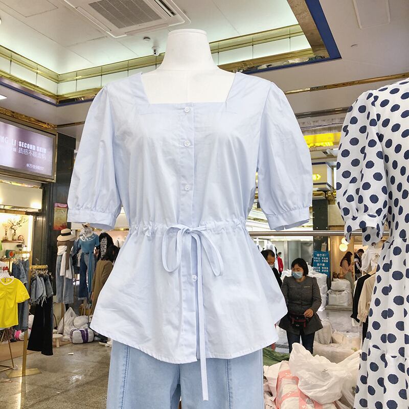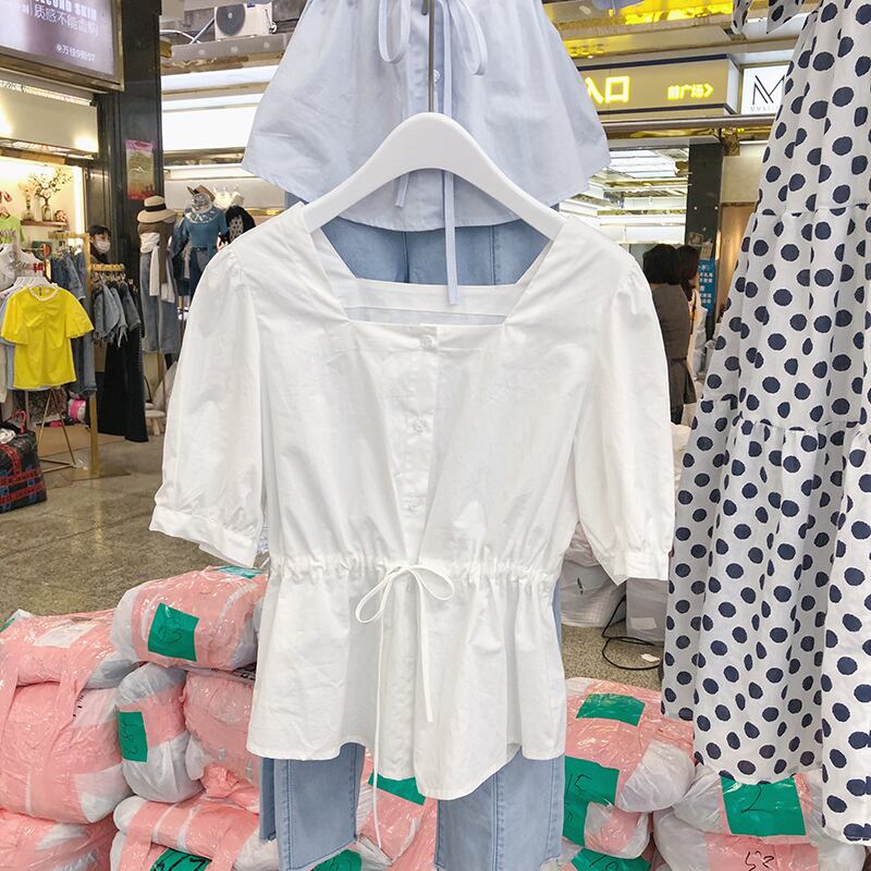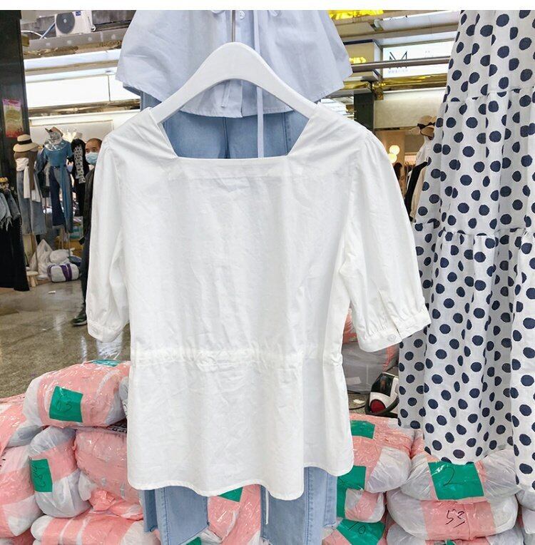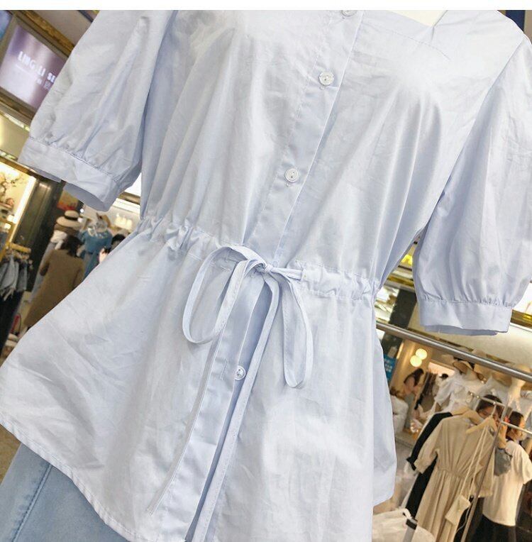 新品 ♡ソリッド カラーギャザー★ブラウス 半袖スリーブシャツブラウス大人女子☆ ショート ソリッドカラー スクウェア ⦿韓国 オルチャン K-pop アイドル ジャケット スーツ ワンピース カーディガン ニット フーディー トレーナー キャミソール スカート シャツ ブラウス 5B4427031 | K clothig adult