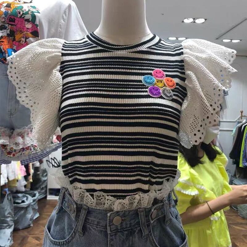 新品 レースストライプ大人女子☆ スウィート ⦿韓国 オルチャン K-pop アイドル ジャケット スーツ ワンピース カーディガン ニット フーディー トレーナー キャミソール スカート シャツ ブラウス 5B7102359