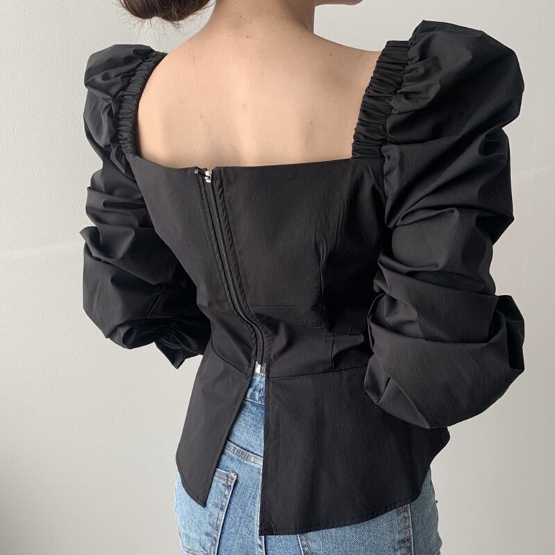 新品KOREAバックジッパースリーブシャツブラウス スクウェアネック ⦿韓国 オルチャン K-pop アイドル ジャケット スーツ ワンピース カーディガン ニット フーディー トレーナー キャミソール スカート シャツ ブラウス 5A7435414 | K clothig adult