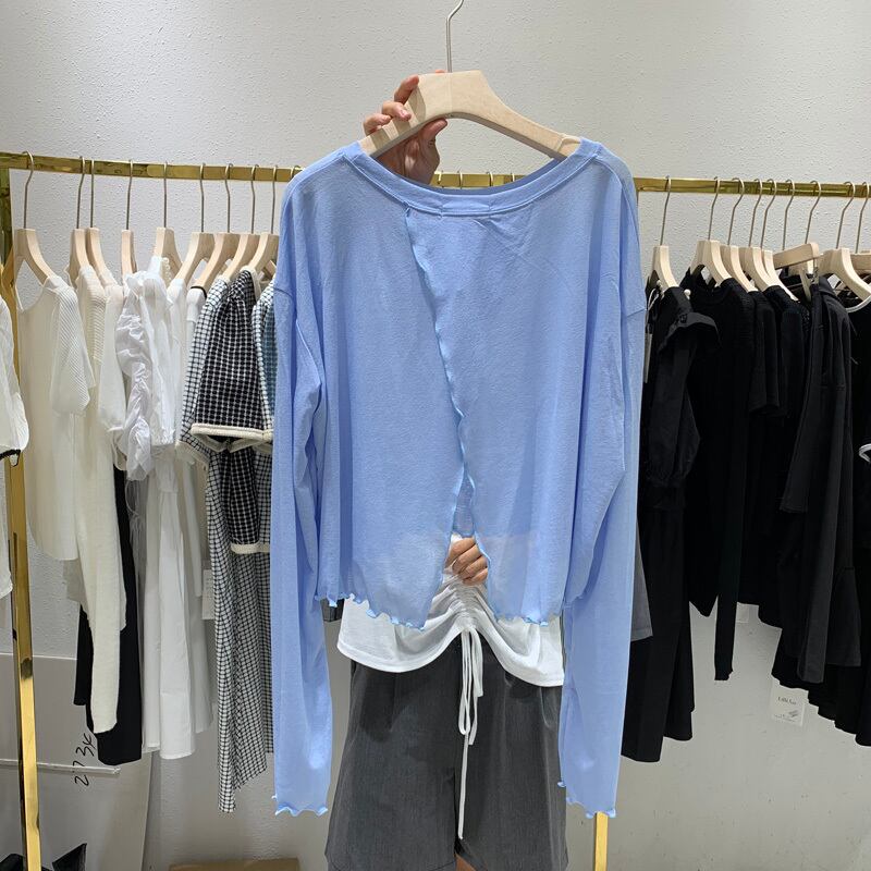 新品 バックスリットソリッド カラートップス ロング コットン ラウンドネック ソリッドカラー ⦿韓国 オルチャン K-pop アイドル ジャケット スーツ ワンピース カーディガン ニット フーディー トレーナー キャミソール スカート シャツ ブラウス 5B9177016