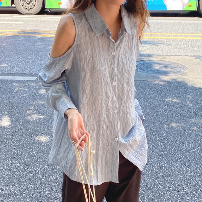 新品 ブラウス ストライプシャツブラウス ロング ⦿韓国 オルチャン K-pop アイドル ジャケット スーツ ワンピース カーディガン ニット フーディー トレーナー キャミソール スカート シャツ ブラウス 5A1045730 | K clothig adult