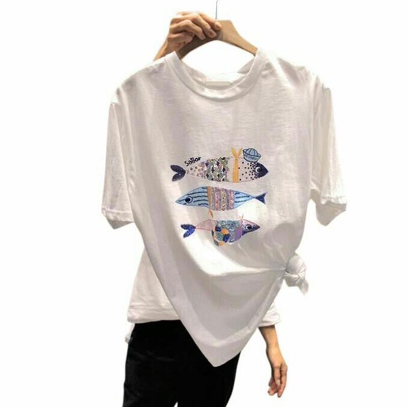 新品 Tシャツ 大人女子☆ラウンドネック刺繍白ブラウス ホワイト ⦿韓国 オルチャン K-pop アイドル ジャケット スーツ ワンピース カーディガン ニット フーディー トレーナー キャミソール スカート シャツ ブラウス 5B5920464