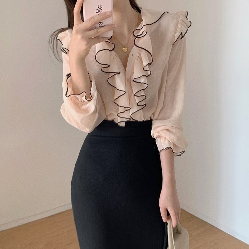 新品 Vネックカラーシャツブラウストップス 大人女子☆ ロング エレガント ステッチ ⦿韓国 オルチャン K-pop アイドル ジャケット スーツ ワンピース カーディガン ニット フーディー トレーナー キャミソール スカート シャツ ブラウス 5A9724848 | K clothig adult