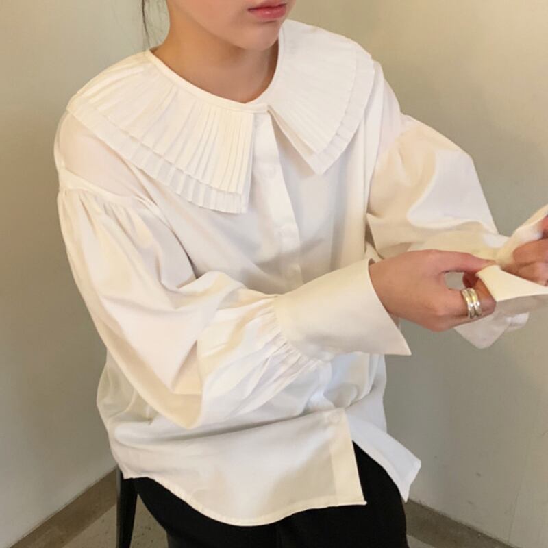 新品 プリーツシャツブラウスソリッド カラースリーブ ランタンスリーブ ソリッドカラー ⦿韓国 オルチャン K-pop アイドル ジャケット スーツ ワンピース カーディガン ニット フーディー トレーナー キャミソール スカート シャツ ブラウス 5A8606312 | K clothig adult