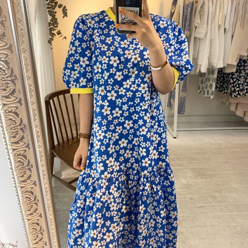 新品 カラーラウンドネック花柄膝丈 ひざ丈ラッフル フラワーデザイン ⦿韓国 オルチャン K-pop アイドル ジャケット スーツ ワンピース カーディガン ニット フーディー トレーナー キャミソール スカート シャツ ブラウス 5A4910054