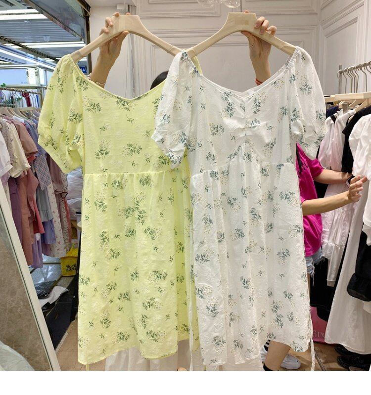 新品 スリーブ♥カワイイ♥花柄サマードレス ワンピースミディ 夏物 スクウェア ⦿韓国 オルチャン K-pop アイドル ジャケット スーツ ワンピース カーディガン ニット フーディー トレーナー キャミソール スカート シャツ ブラウス 5B7595619