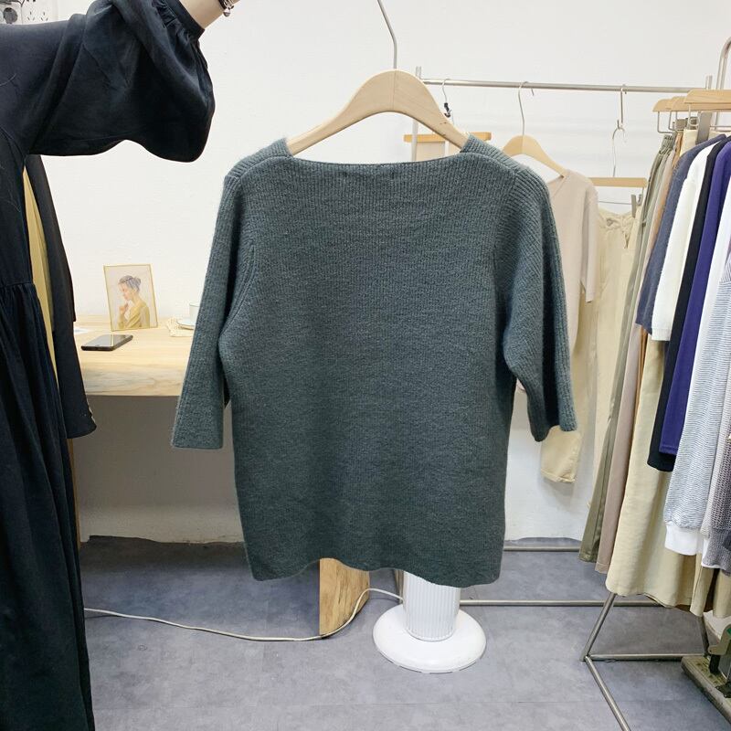 新品 ソリッド カラースリーブVネックプルオーバー セーター ソリッドカラー ⦿韓国 オルチャン K-pop アイドル ジャケット スーツ ワンピース カーディガン ニット フーディー トレーナー キャミソール スカート シャツ ブラウス 5B1834412
