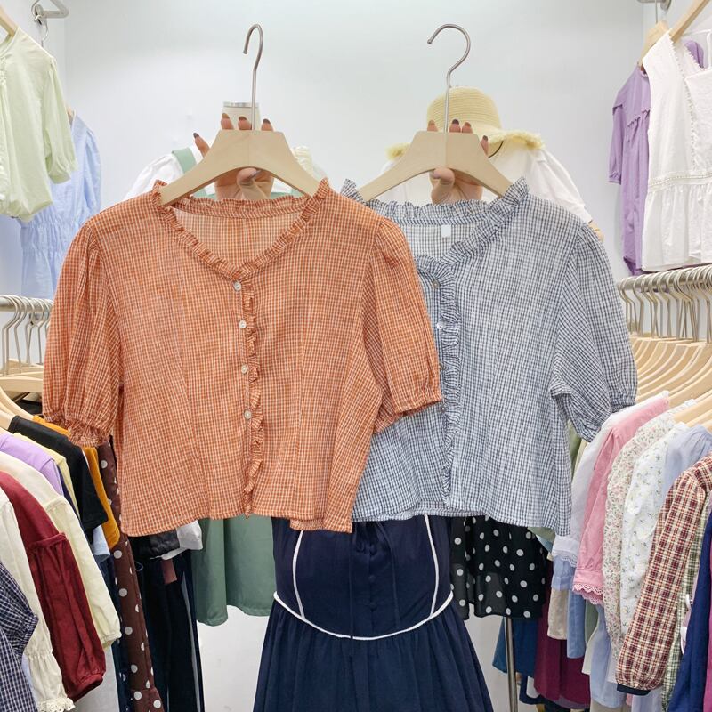 新品 ショート♡チェック柄カーディガン コットン ⦿韓国 オルチャン K-pop アイドル ジャケット スーツ ワンピース カーディガン ニット フーディー トレーナー キャミソール スカート シャツ ブラウス 5B6541970