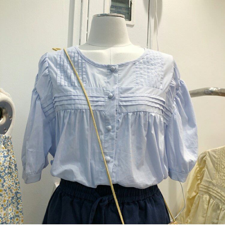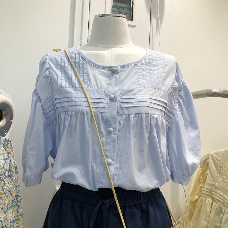 新品 サマーカラープリーツスリーブブラウス スウィート 夏物 ピュア ⦿韓国 オルチャン K-pop アイドル ジャケット スーツ ワンピース カーディガン ニット フーディー トレーナー キャミソール スカート シャツ ブラウス 5B6378400 | K clothig adult