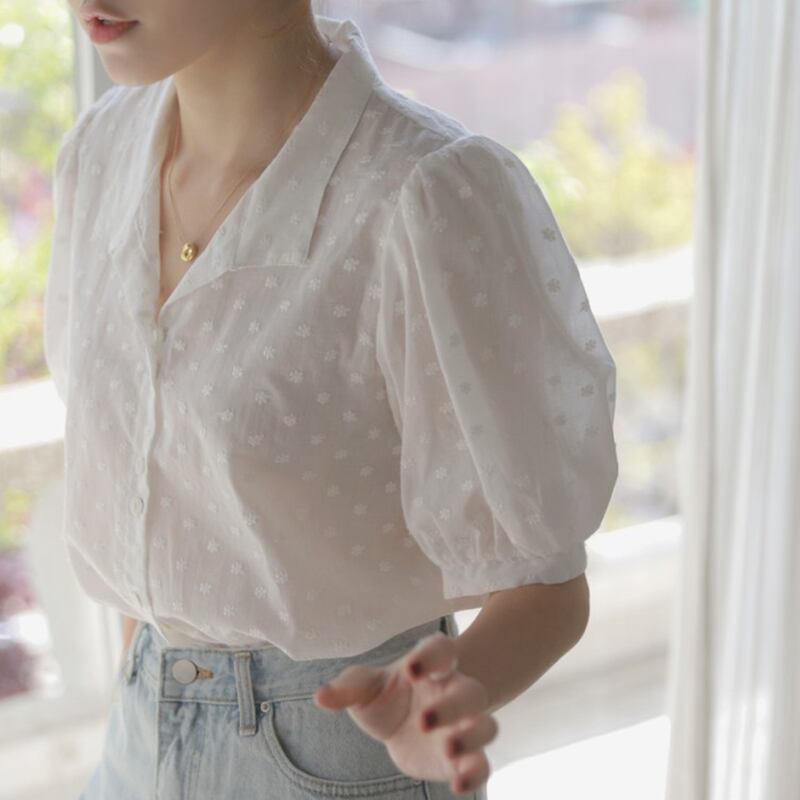 新品 シングルブレストレース刺繍スリーブシャツブラウストップス 大人女子☆ ⦿韓国 オルチャン K-pop アイドル ジャケット スーツ ワンピース カーディガン ニット フーディー トレーナー キャミソール スカート シャツ ブラウス 5A2357863