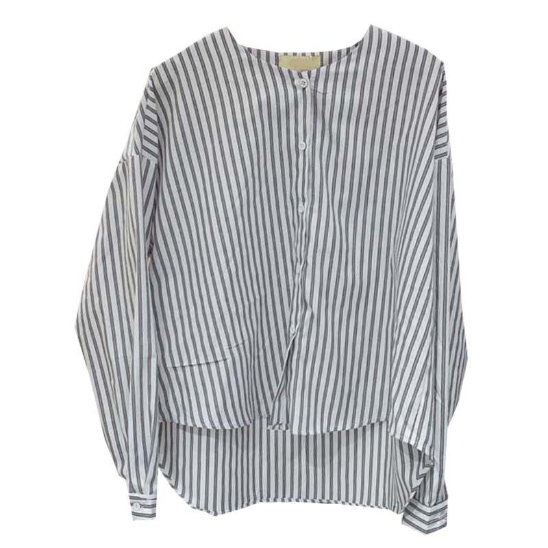 新品 カジュアル白ラウンドネックストライプシャツブラウスカーディガン ホワイト ⦿韓国 オルチャン K-pop アイドル ジャケット スーツ ワンピース カーディガン ニット フーディー トレーナー キャミソール スカート シャツ ブラウス 5B3038382