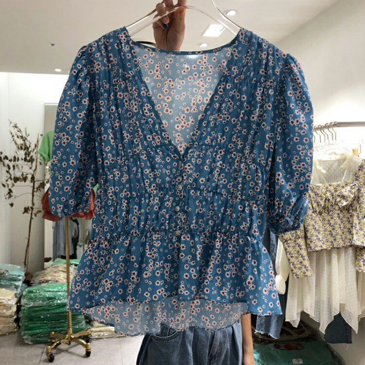 新品 スタンダード花柄Vネックシャツブラウス大人女子☆★スカート トップス レトロ ⦿韓国 オルチャン K-pop アイドル ジャケット スーツ ワンピース カーディガン ニット フーディー トレーナー キャミソール スカート シャツ ブラウス 5B7003866