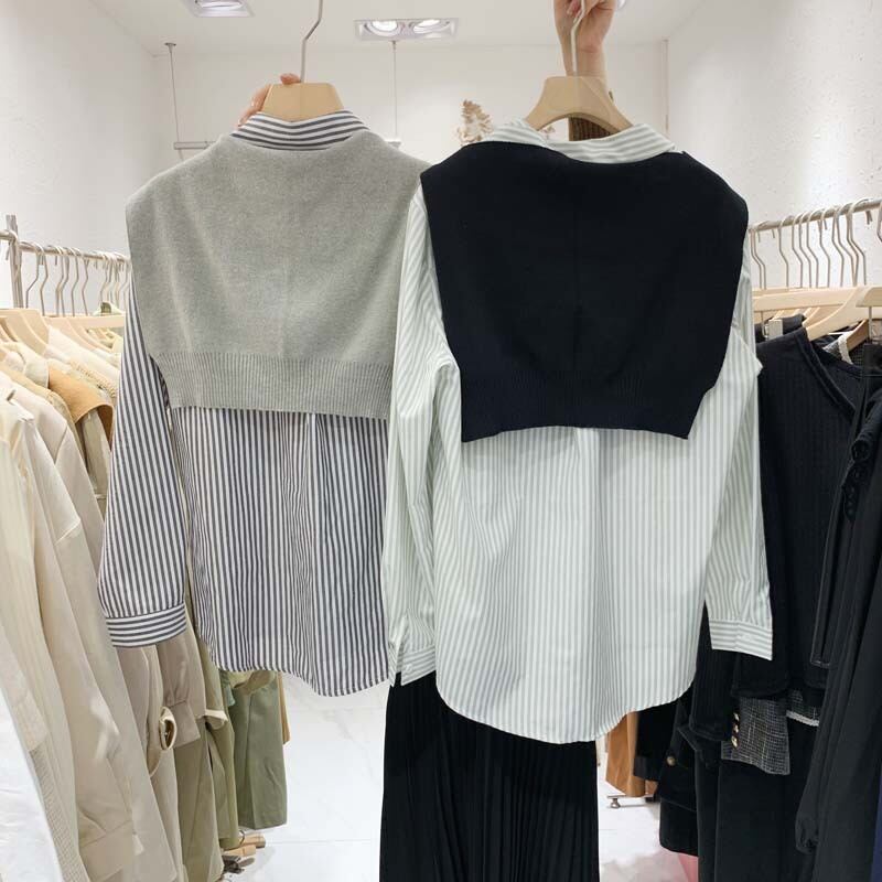 新品 カジュアルストライプシャツブラウスカーディガン スウィート ⦿韓国 オルチャン K-pop アイドル ジャケット スーツ ワンピース カーディガン ニット フーディー トレーナー キャミソール スカート シャツ ブラウス 5B4137827 | K clothig adult