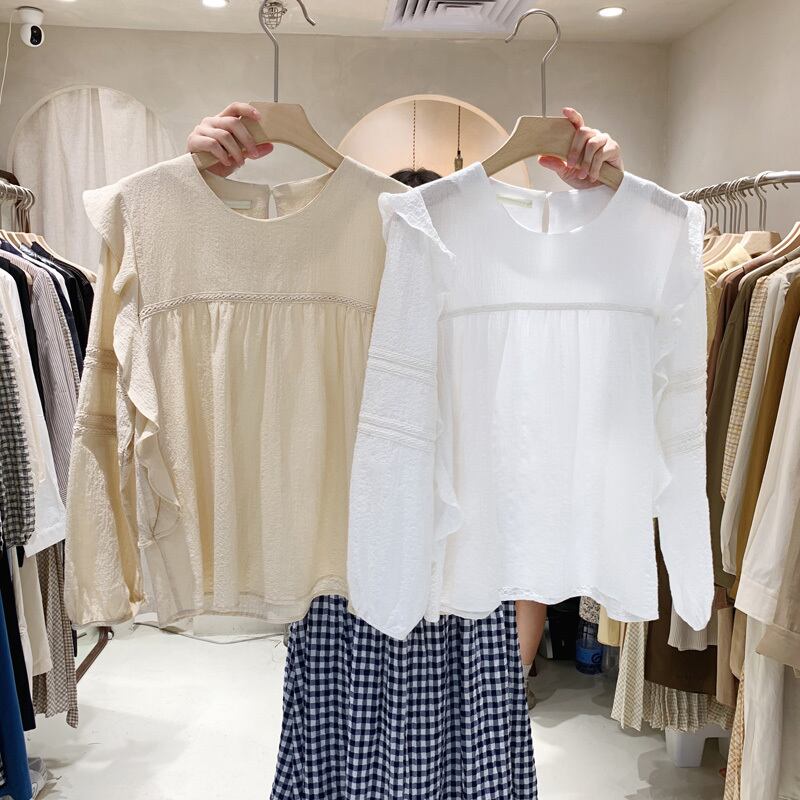 新品 カラーラウンドネックプルオーバー シャツブラウス コットン ピュア ⦿韓国 オルチャン K-pop アイドル ジャケット スーツ ワンピース カーディガン ニット フーディー トレーナー キャミソール スカート シャツ ブラウス 5B8088827