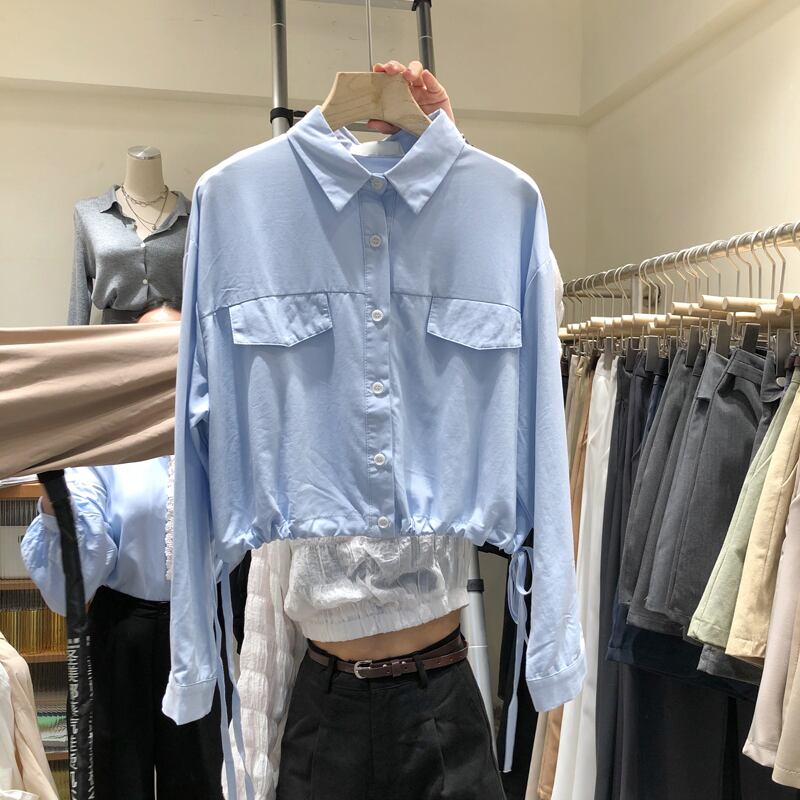 新品 オータムギャザー★ショートトップス 秋物 ピュア ⦿韓国 オルチャン K-pop アイドル ジャケット スーツ ワンピース カーディガン ニット フーディー トレーナー キャミソール スカート シャツ ブラウス 5B3051731 | K clothig adult