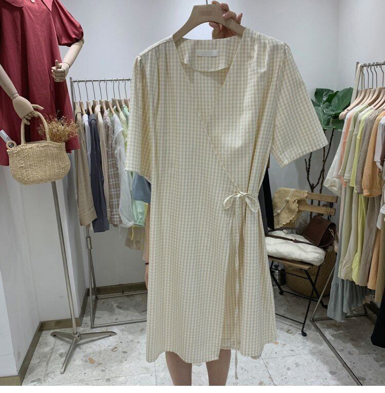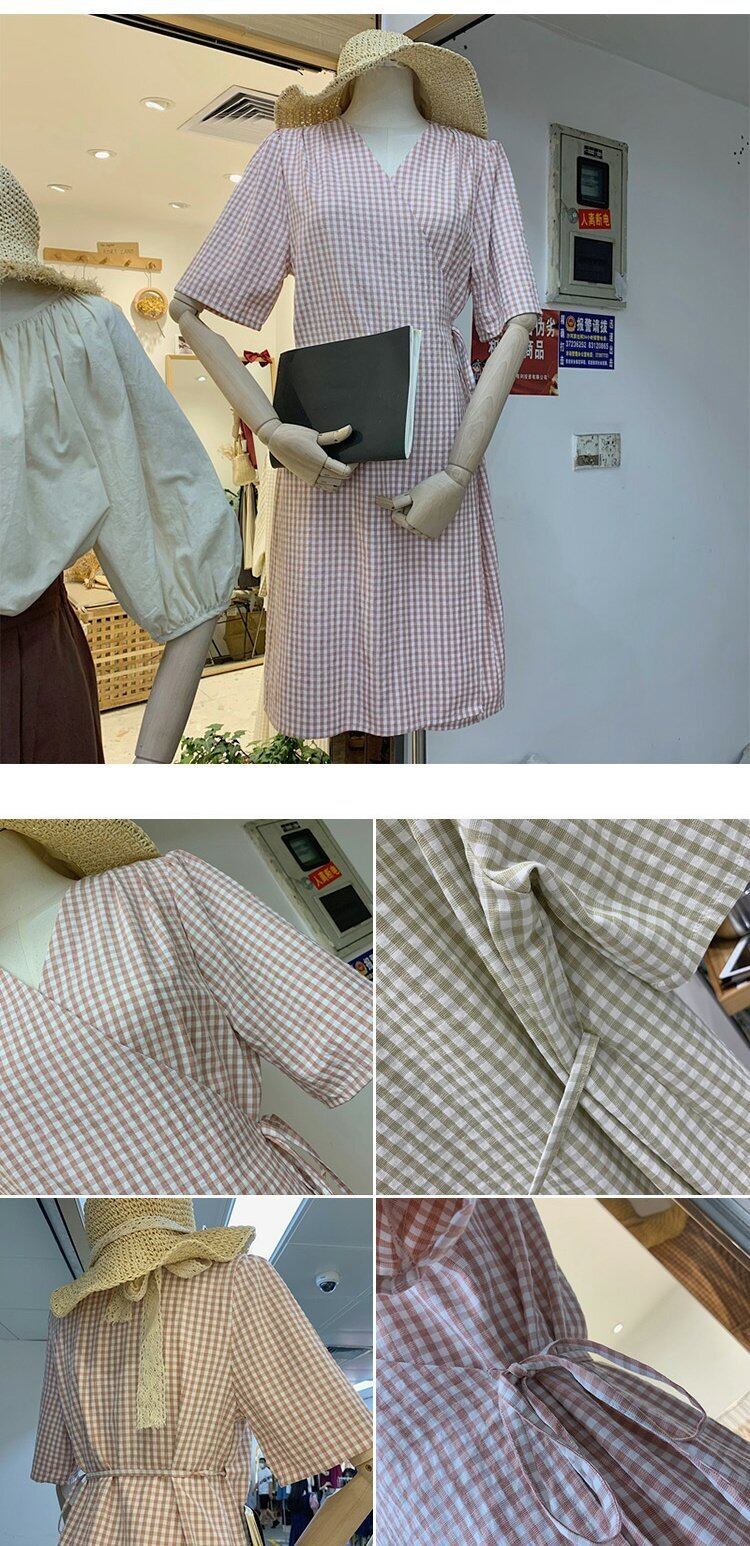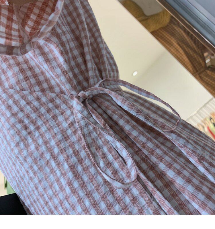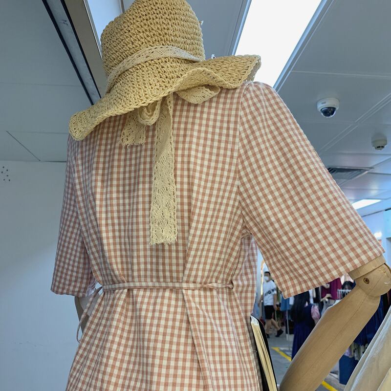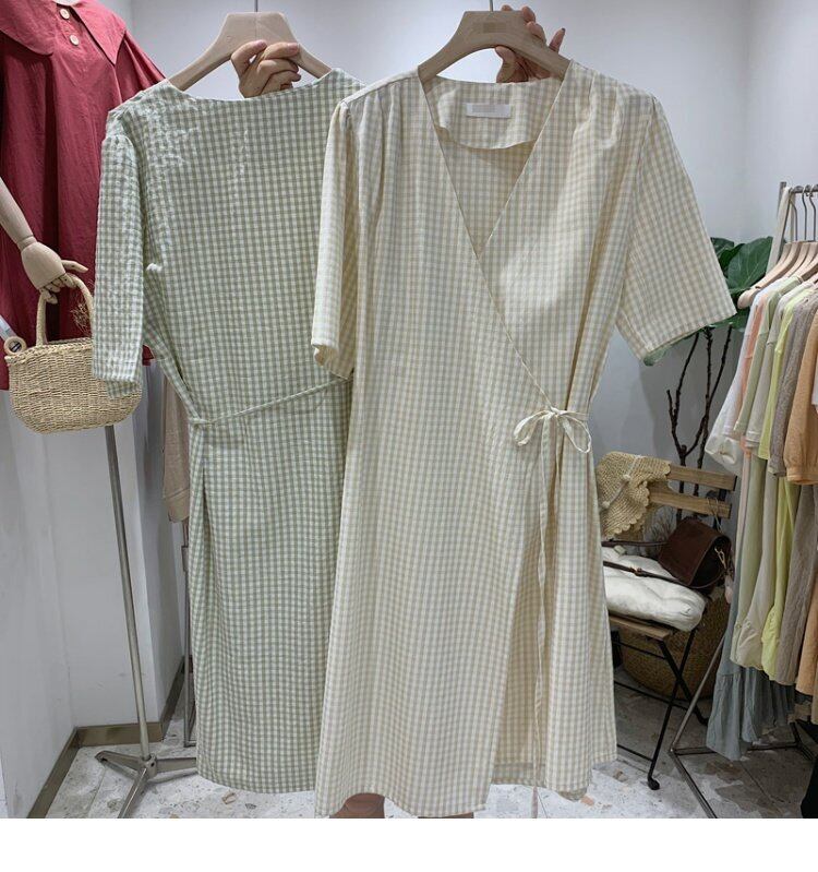 新品 サマーチェック柄スリーブワンピースバンドVネック 夏物 ⦿韓国 オルチャン K-pop アイドル ジャケット スーツ ワンピース カーディガン ニット フーディー トレーナー キャミソール スカート シャツ ブラウス 5B5386100