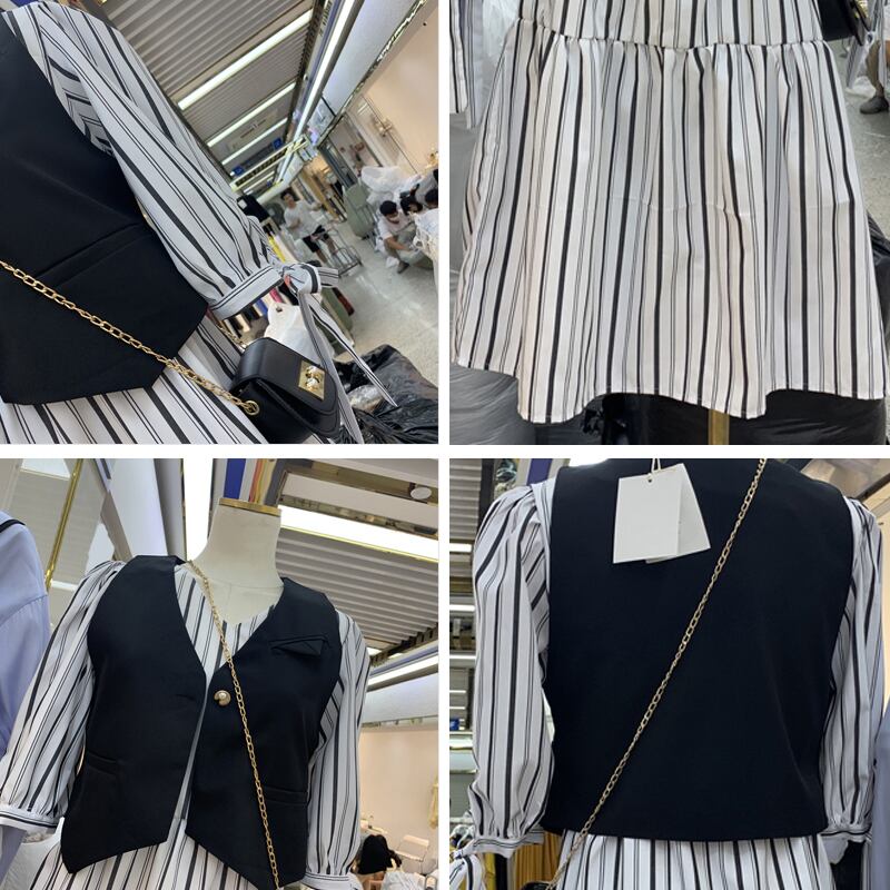 新品 スリーブストライプVネックシャツブラウスロングスカート ショート ⦿韓国 オルチャン K-pop アイドル ジャケット スーツ ワンピース カーディガン ニット フーディー トレーナー キャミソール スカート シャツ ブラウス 5B0703204