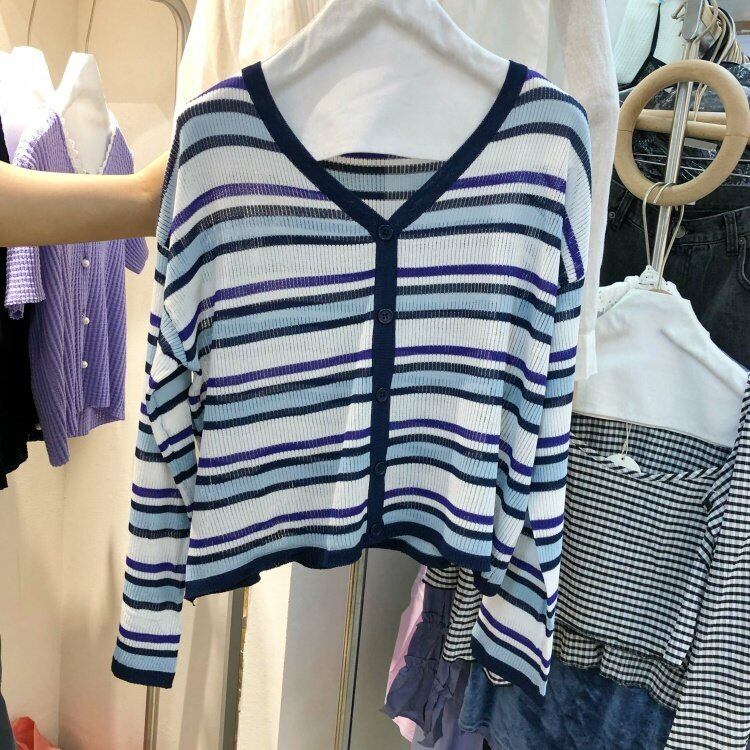 新品 サマー♡ストライプカラーVネック♥カワイイ♥カーディガン スウィート 夏物 ⦿韓国 オルチャン K-pop アイドル ジャケット スーツ ワンピース カーディガン ニット フーディー トレーナー キャミソール スカート シャツ ブラウス 5B6795071