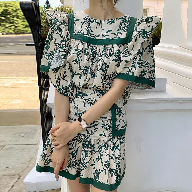 新品 スタンダードラウンドネック♥カワイイ♥プリント柄シャツブラウスプリーツスカート レトロ ⦿韓国 オルチャン K-pop アイドル ジャケット スーツ ワンピース カーディガン ニット フーディー トレーナー キャミソール スカート シャツ ブラウス 5A7052264 | K clothig adult