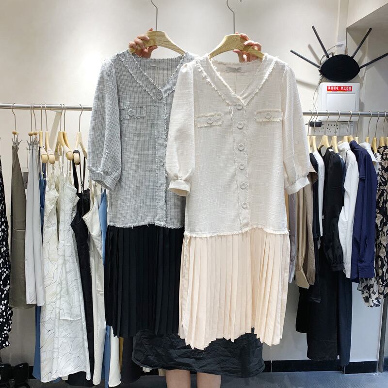 新品 Vネックプリーツスカート ロング ステッチ ⦿韓国 オルチャン K-pop アイドル ジャケット スーツ ワンピース カーディガン ニット フーディー トレーナー キャミソール スカート シャツ ブラウス 5B7589094