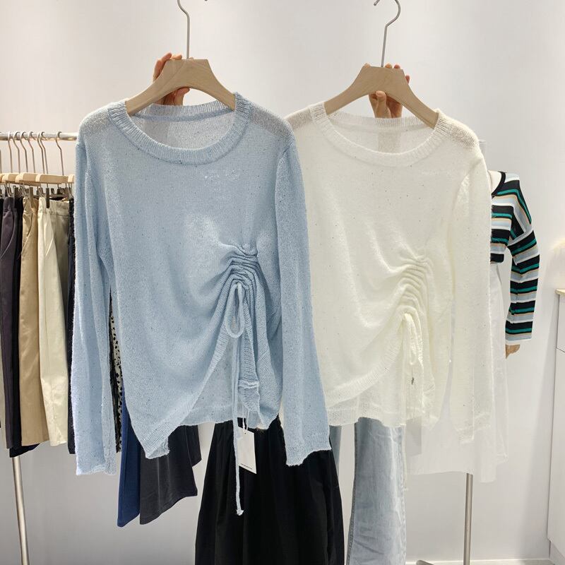 新品 ♡サイドギャザーラウンドネックソリッド カラースリーブスパンコールプルオーバー セーター ソリッドカラー ⦿韓国 オルチャン K-pop アイドル ジャケット スーツ ワンピース カーディガン ニット フーディー トレーナー キャミソール スカート シャツ ブラウス 5B6938484