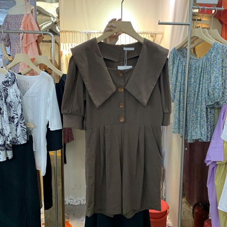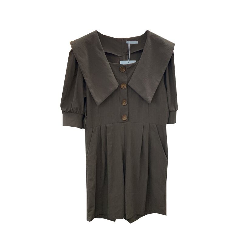 新品 スリーブシングルブレストジャンプスーツ ジャンパースカート大人女子☆ コットン ⦿韓国 オルチャン K-pop アイドル ジャケット スーツ ワンピース カーディガン ニット フーディー トレーナー キャミソール スカート シャツ ブラウス 5B0750441