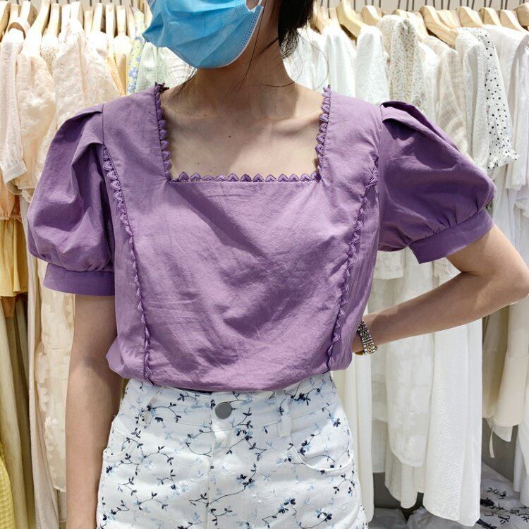 新品 スリーブ♥カワイイ♥プルオーバー シャツブラウス スクウェア ⦿韓国 オルチャン K-pop アイドル ジャケット スーツ ワンピース カーディガン ニット フーディー トレーナー キャミソール スカート シャツ ブラウス 5B9696236