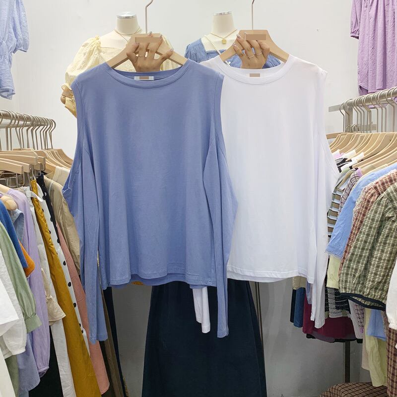 新品 ラウンドネックソリッド カラーカジュアル長袖スリーブTシャツ 大人女子☆ ロング ソリッドカラー ⦿韓国 オルチャン K-pop アイドル ジャケット スーツ ワンピース カーディガン ニット フーディー トレーナー キャミソール スカート シャツ ブラウス 5B1360561