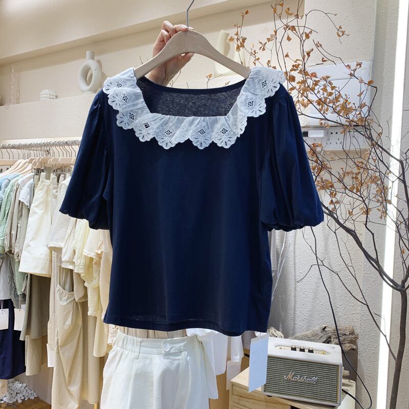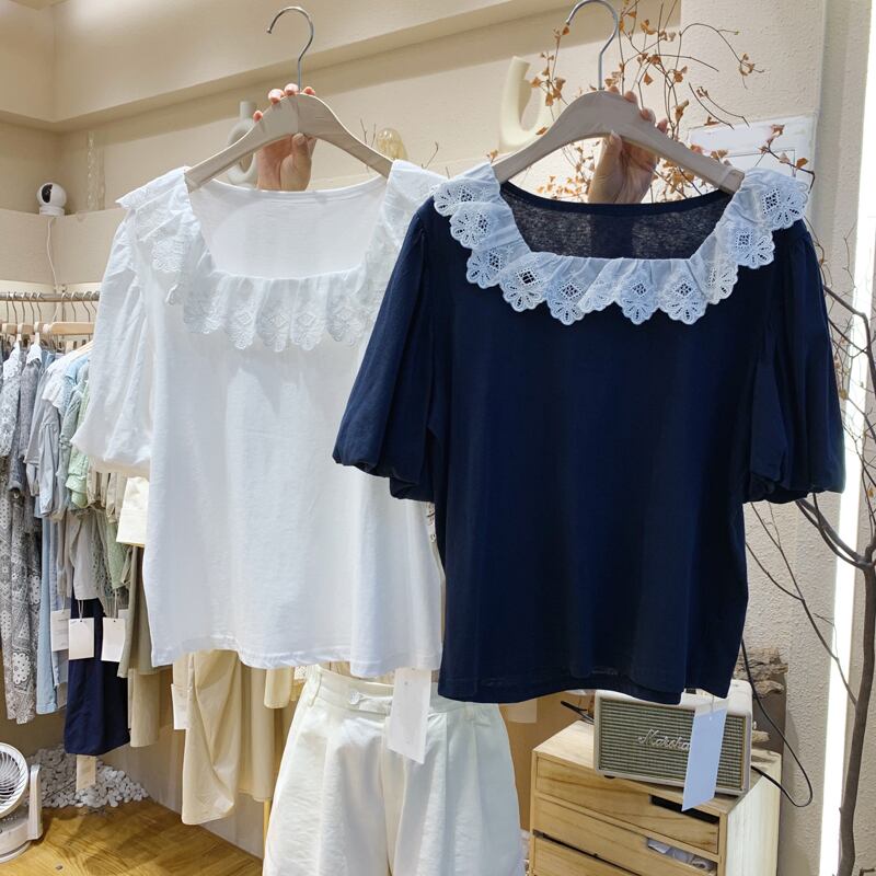 新品 レーススリーブ半袖Tシャツ ショート コットン 半袖スリーブ ステッチ ⦿韓国 オルチャン K-pop アイドル ジャケット スーツ ワンピース カーディガン ニット フーディー トレーナー キャミソール スカート シャツ ブラウス 5B9211635
