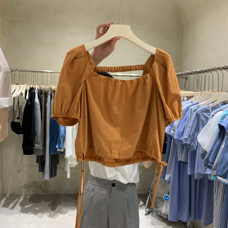 新品 スリーブギャザーカラーカジュアルスリムトップス コットン ピュア ⦿韓国 オルチャン K-pop アイドル ジャケット スーツ ワンピース カーディガン ニット フーディー トレーナー キャミソール スカート シャツ ブラウス 5B4401998