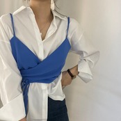 新品 シャツブラウスカラーバンド★キャミソール ロング ⦿韓国 オルチャン K-pop アイドル ジャケット スーツ ワンピース カーディガン ニット フーディー トレーナー キャミソール スカート シャツ ブラウス 5A5610619 | K clothig adult