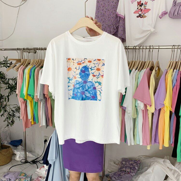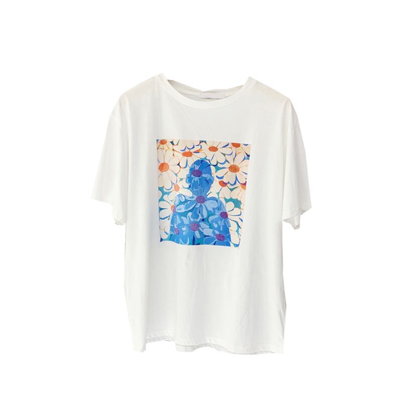 新品 ラウンドネックプリント柄Tシャツ トップス 大人女子☆ ⦿韓国 オルチャン K-pop アイドル ジャケット スーツ ワンピース カーディガン ニット フーディー トレーナー キャミソール スカート シャツ ブラウス 5B5423271
