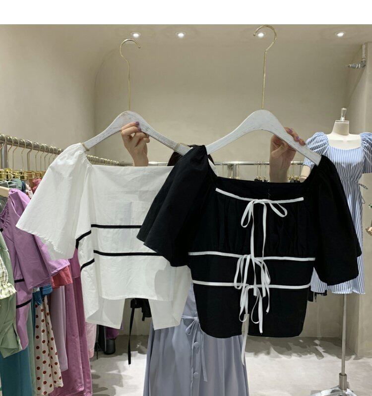 新品 スリーブプルオーバー シャツブラウス コットン スクウェア ⦿韓国 オルチャン K-pop アイドル ジャケット スーツ ワンピース カーディガン ニット フーディー トレーナー キャミソール スカート シャツ ブラウス 5B5535886