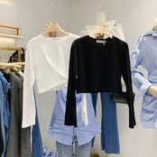 新品 カラーラウンドネック♡ショートTシャツ ロング ⦿韓国 オルチャン K-pop アイドル ジャケット スーツ ワンピース カーディガン ニット フーディー トレーナー キャミソール スカート シャツ ブラウス 5B1577427