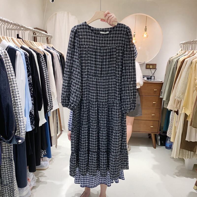 新品 ラウンドネックロング♥カワイイ♥チェック柄 コットン ⦿韓国 オルチャン K-pop アイドル ジャケット スーツ ワンピース カーディガン ニット フーディー トレーナー キャミソール スカート シャツ ブラウス 5B1394839
