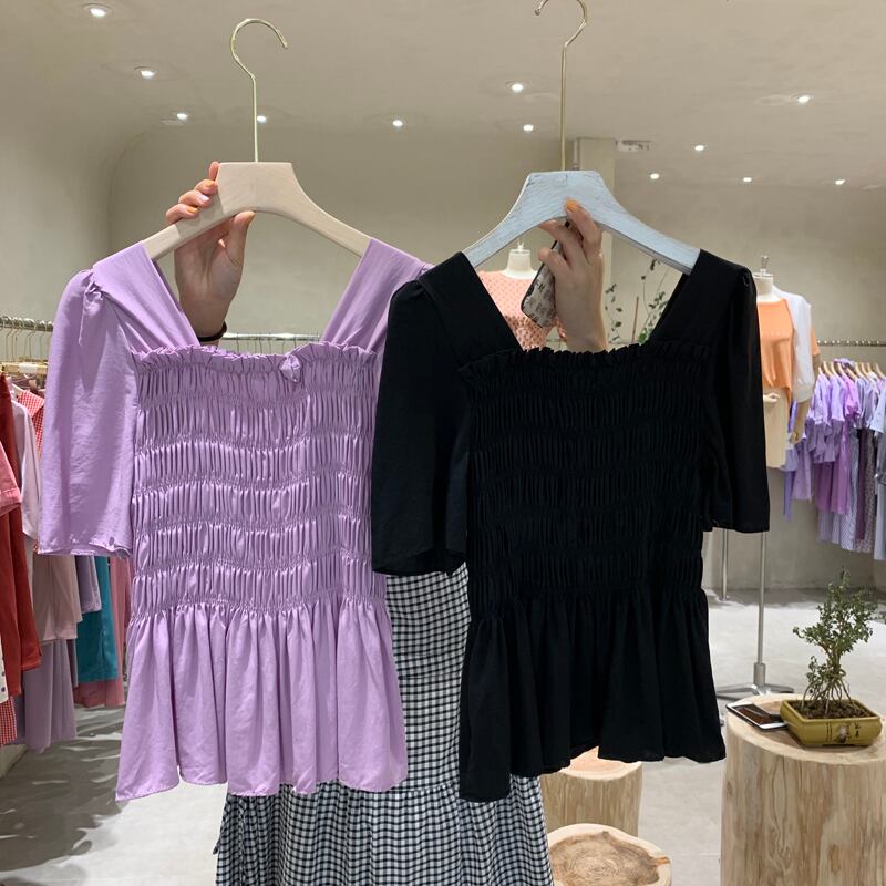 新品 スリーブプリーツストレッチサマー♥カワイイ♥トップス エラスティック 伸縮 夏物 スクウェア ⦿韓国 オルチャン K-pop アイドル ジャケット スーツ ワンピース カーディガン ニット フーディー トレーナー キャミソール スカート シャツ ブラウス 5B3116823