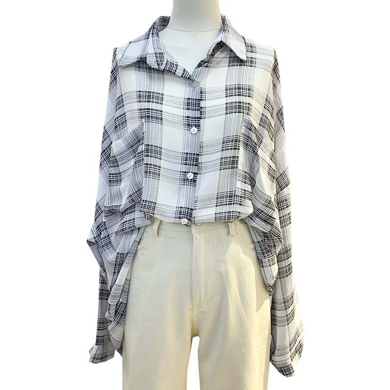 新品 サマーシフォンチェック柄シャツブラウスカーディガン スウィート 夏物 ⦿韓国 オルチャン K-pop アイドル ジャケット スーツ ワンピース カーディガン ニット フーディー トレーナー キャミソール スカート シャツ ブラウス 5B1073922