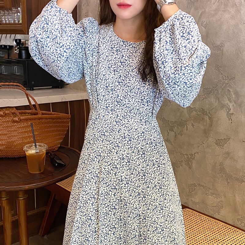 新品 スタンダード花柄ラウンドネック★ロング膝丈 ひざ丈大人女子☆ レトロ ⦿韓国 オルチャン K-pop アイドル ジャケット スーツ ワンピース カーディガン ニット フーディー トレーナー キャミソール スカート シャツ ブラウス 5A6934282 | K clothig adult
