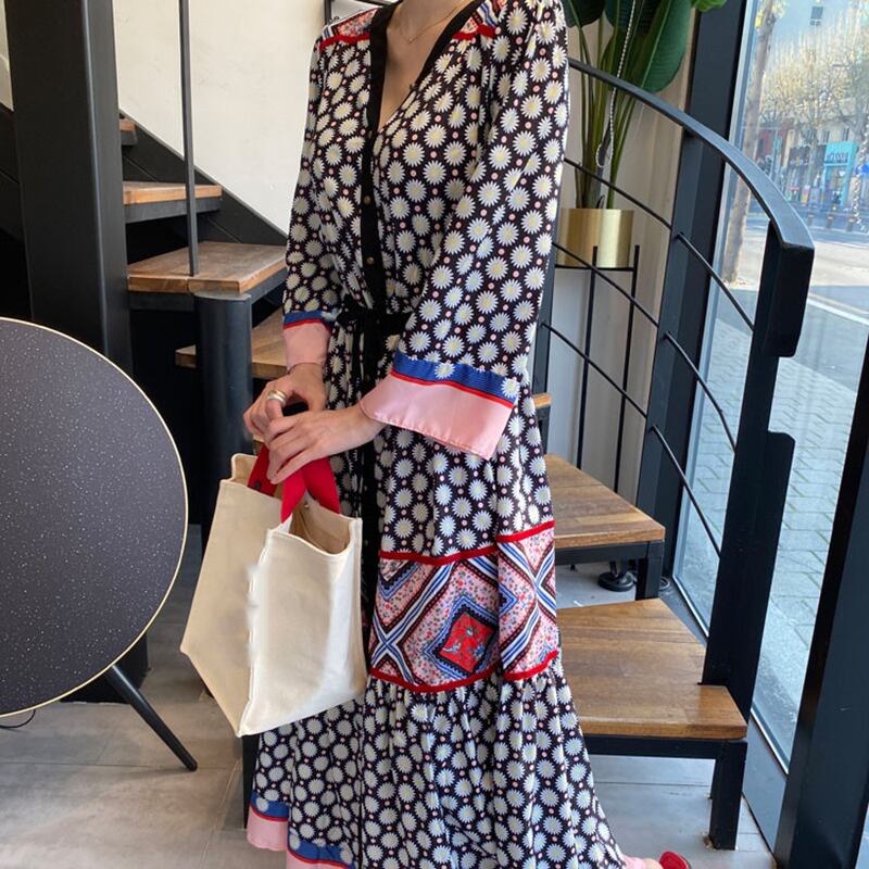 新品 スタンダードエスニックプリント柄♥カワイイ♥Vネック ロング レトロ ⦿韓国 オルチャン K-pop アイドル ジャケット スーツ ワンピース カーディガン ニット フーディー トレーナー キャミソール スカート シャツ ブラウス 5A2176937 | K clothig adult
