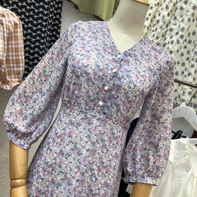 新品 花柄シフォン白★Vネックスカート ホワイト パープル ⦿韓国 オルチャン K-pop アイドル ジャケット スーツ ワンピース カーディガン ニット フーディー トレーナー キャミソール スカート シャツ ブラウス 5B4354945 | K clothig adult