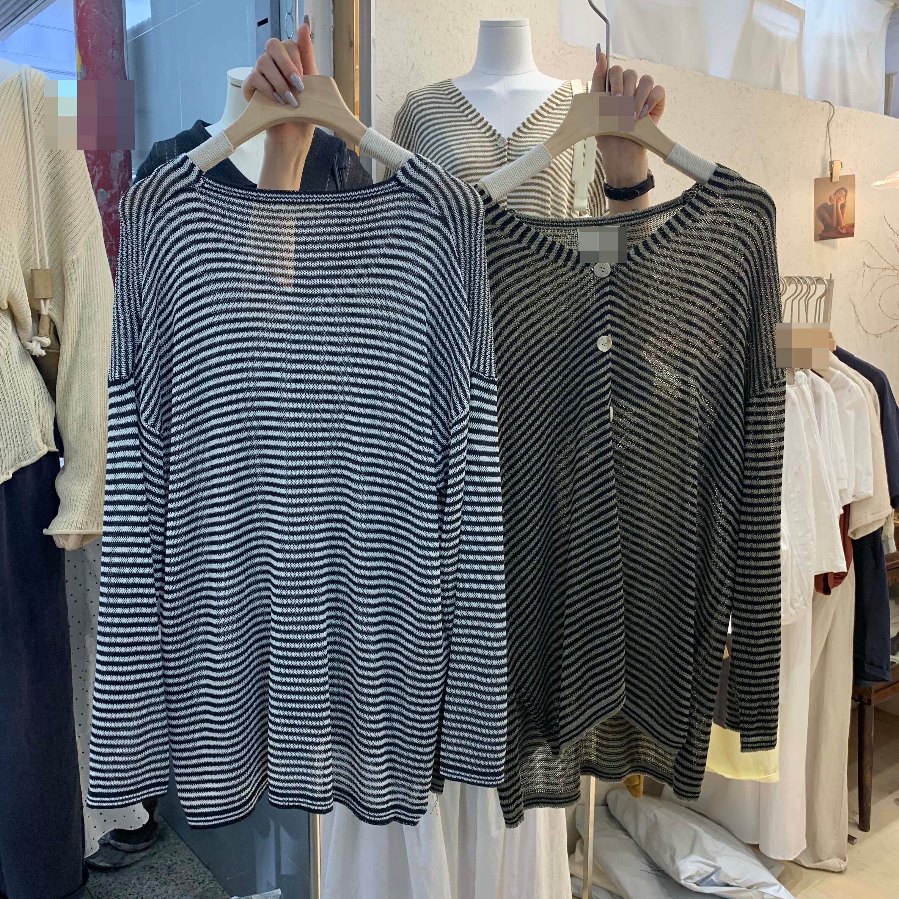 新品 サマーストライプニットカーディガン ロング 夏物 ⦿韓国 オルチャン K-pop アイドル ジャケット スーツ ワンピース カーディガン ニット フーディー トレーナー キャミソール スカート シャツ ブラウス 5B3714454