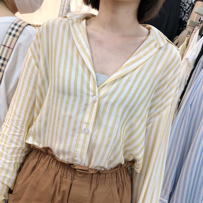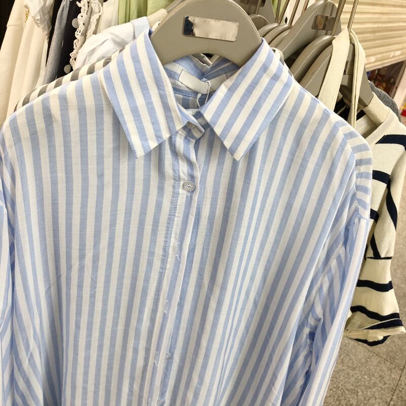 新品 ストライプシャツブラウス スウィート ⦿韓国 オルチャン K-pop アイドル ジャケット スーツ ワンピース カーディガン ニット フーディー トレーナー キャミソール スカート シャツ ブラウス 5B9517402
