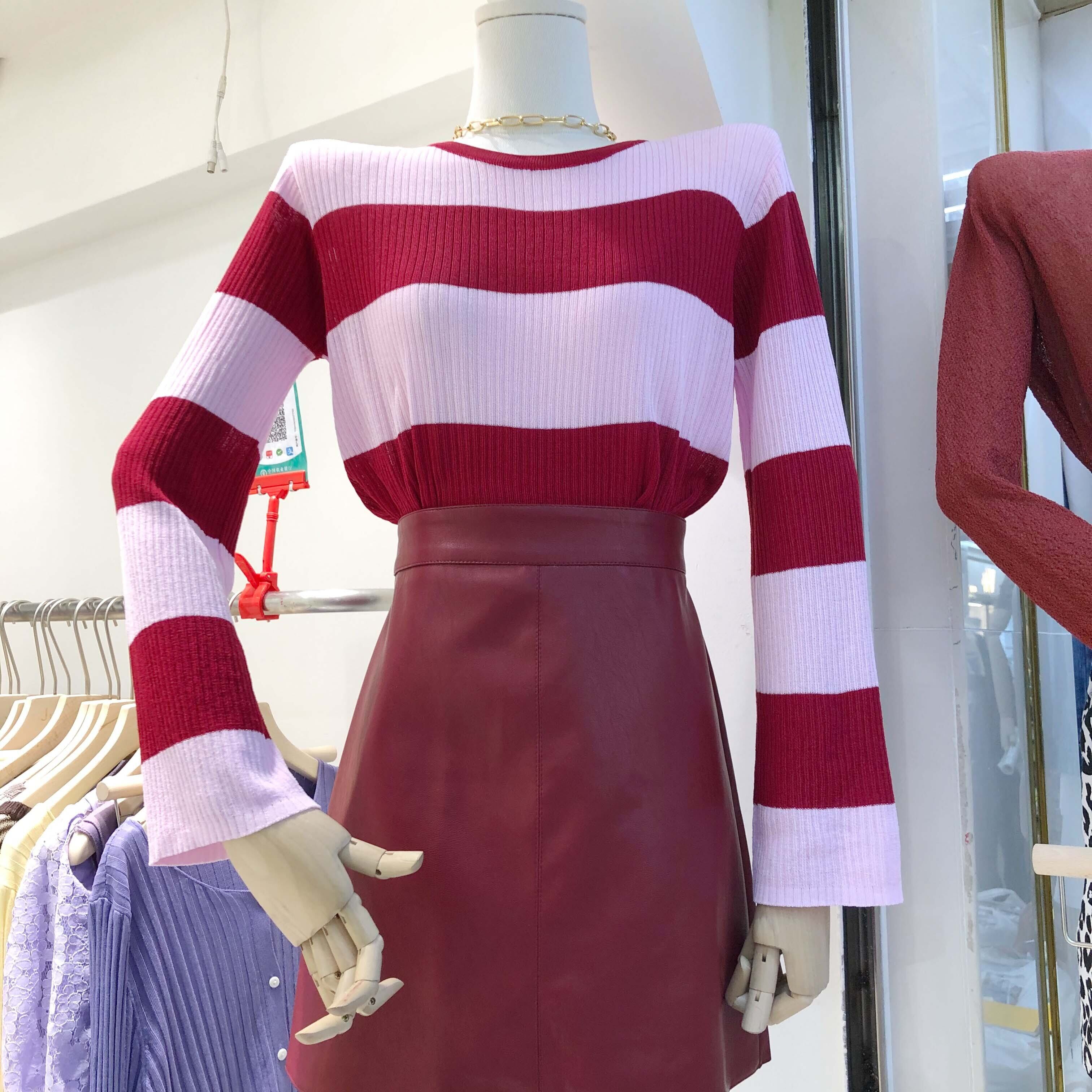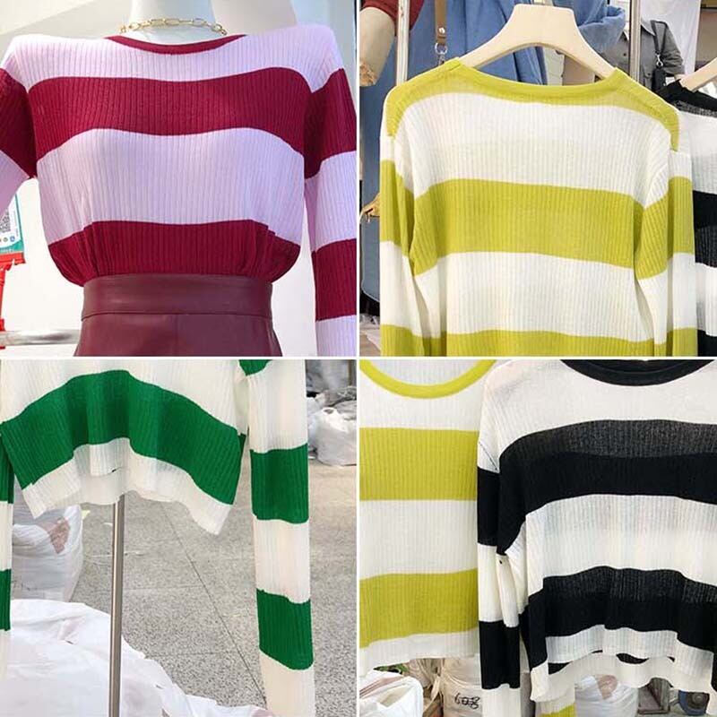 新品 ストライプカラーニットトップス スウィート ⦿韓国 オルチャン K-pop アイドル ジャケット スーツ ワンピース カーディガン ニット フーディー トレーナー キャミソール スカート シャツ ブラウス 5B0802212