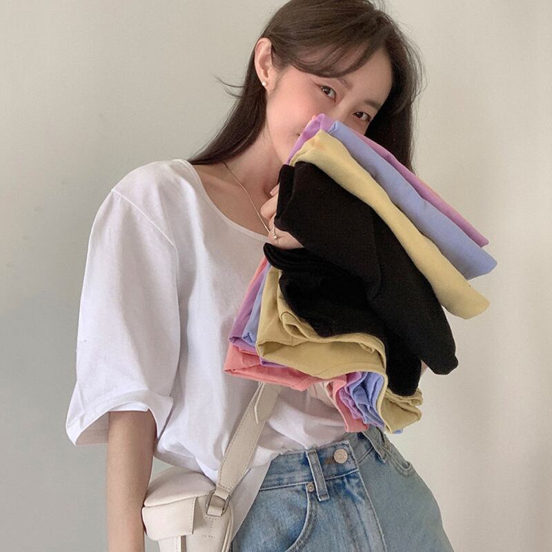 新品 ベーシックカラー白カジュアルTシャツ トップス 大人女子☆ ホワイト ⦿韓国 オルチャン K-pop アイドル ジャケット スーツ ワンピース カーディガン ニット フーディー トレーナー キャミソール スカート シャツ ブラウス 5A3614330