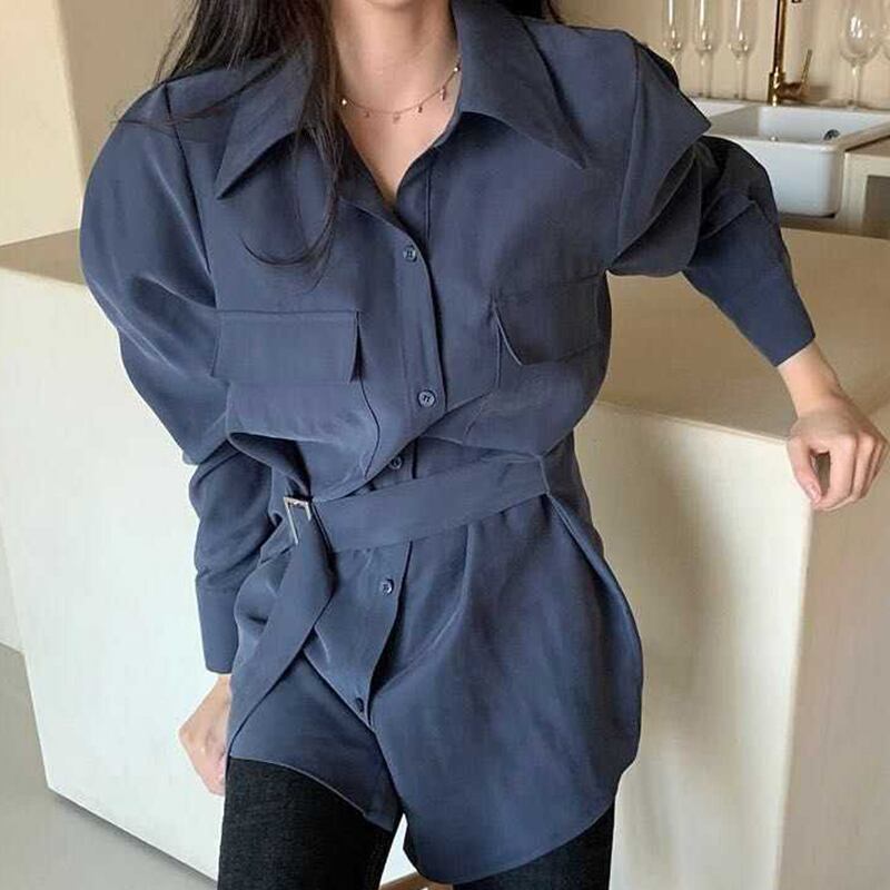 新品 サイド★ポケットシャツブラウス ⦿韓国 オルチャン K-pop アイドル ジャケット スーツ ワンピース カーディガン ニット フーディー トレーナー キャミソール スカート シャツ ブラウス 5A2688197