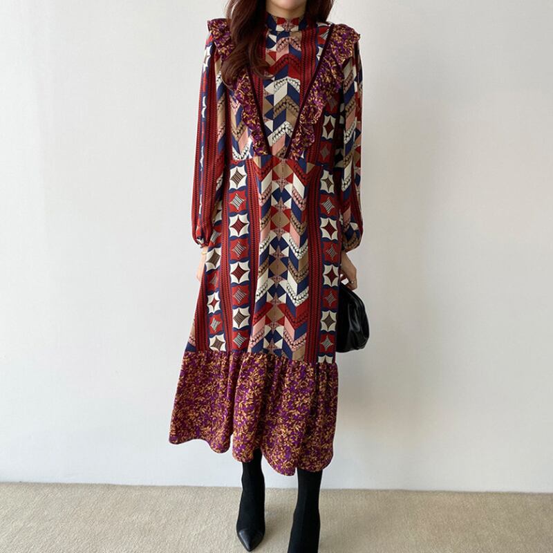 新品 スタンダードプリント柄ストラップ ★スリム ロング レトロ ステッチ ⦿韓国 オルチャン K-pop アイドル ジャケット スーツ ワンピース カーディガン ニット フーディー トレーナー キャミソール スカート シャツ ブラウス 5A3322202 | K clothig adult
